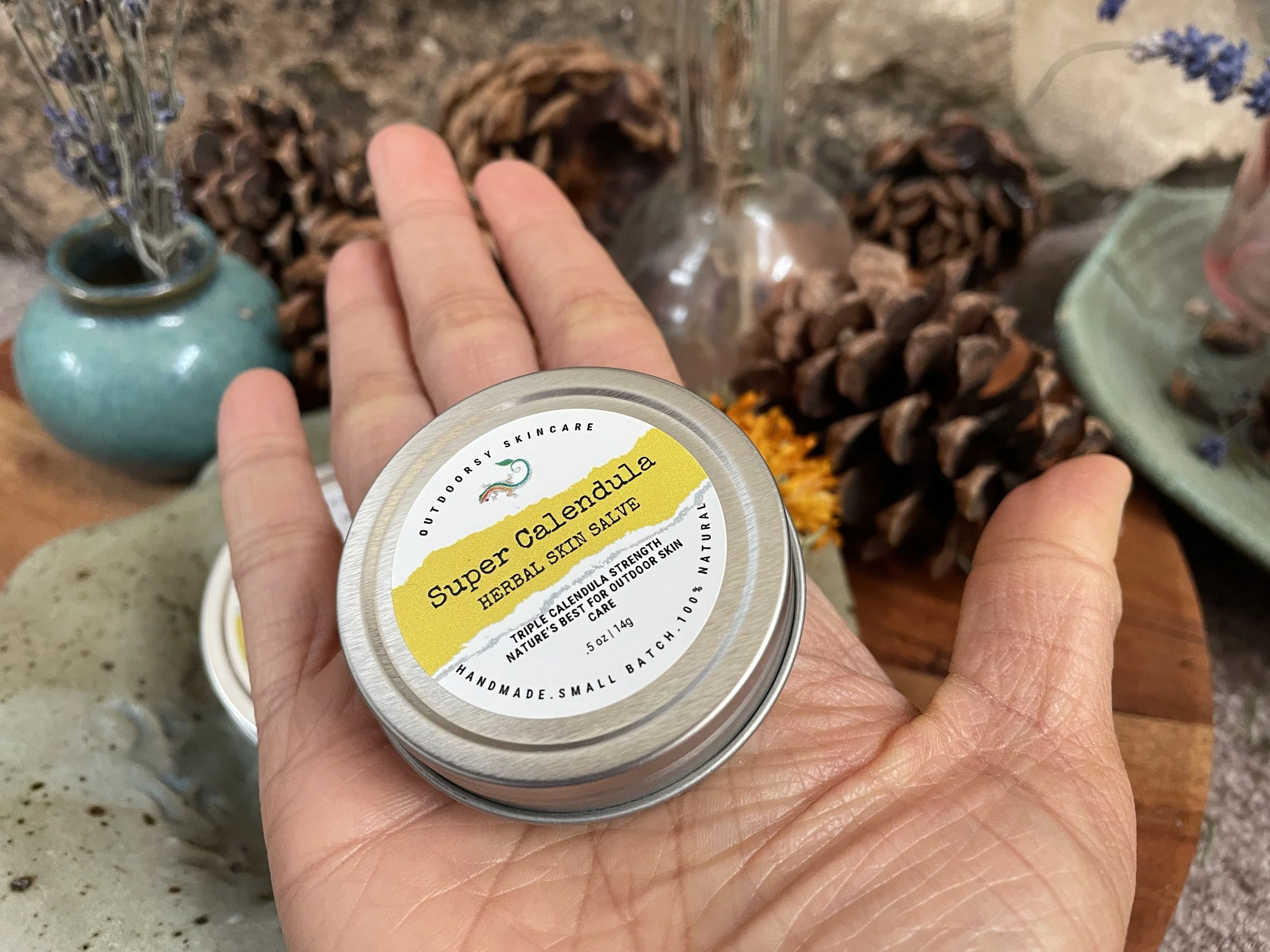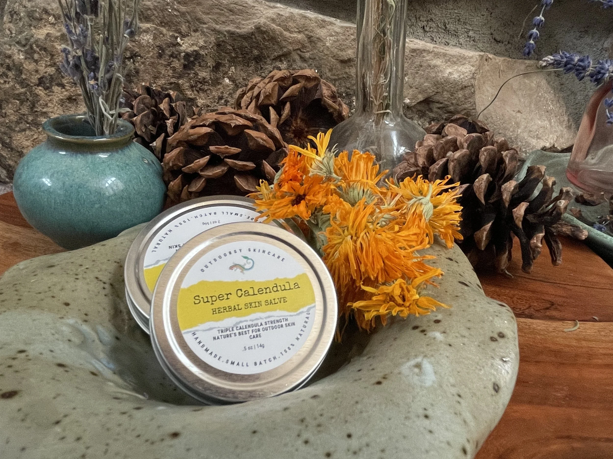 Our Super Calendula Salve is infused with three potent varieties of calendula, giving it a unique botanical strength. It's designed for adventure-worn skin, making it perfect for outdoor enthusiast, athletes, outdoor lovers and those looking for natural skin nourishment.